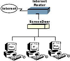 This appliance is connected to their school network at the level of the Internet router. Notice in the above image that any requested URL must go through the ScreenDoor filtering system before it is shown to the user. ScreenDoor is managed by a software program on another single machine that is also connected to the same Local Area Network (LAN), which is a collection of computers connected by the same server. The ScreenDoor system is able to block and monitor access to all computers in the network, no matter what the platform. Every two weeks, the management software reminds the administrator to download an updated version of the blocking list. The management software allows an administrator to set different levels of blocking on a machine-by-machine basis, which is important when there are various labs with different age groups connecting to the same network. |